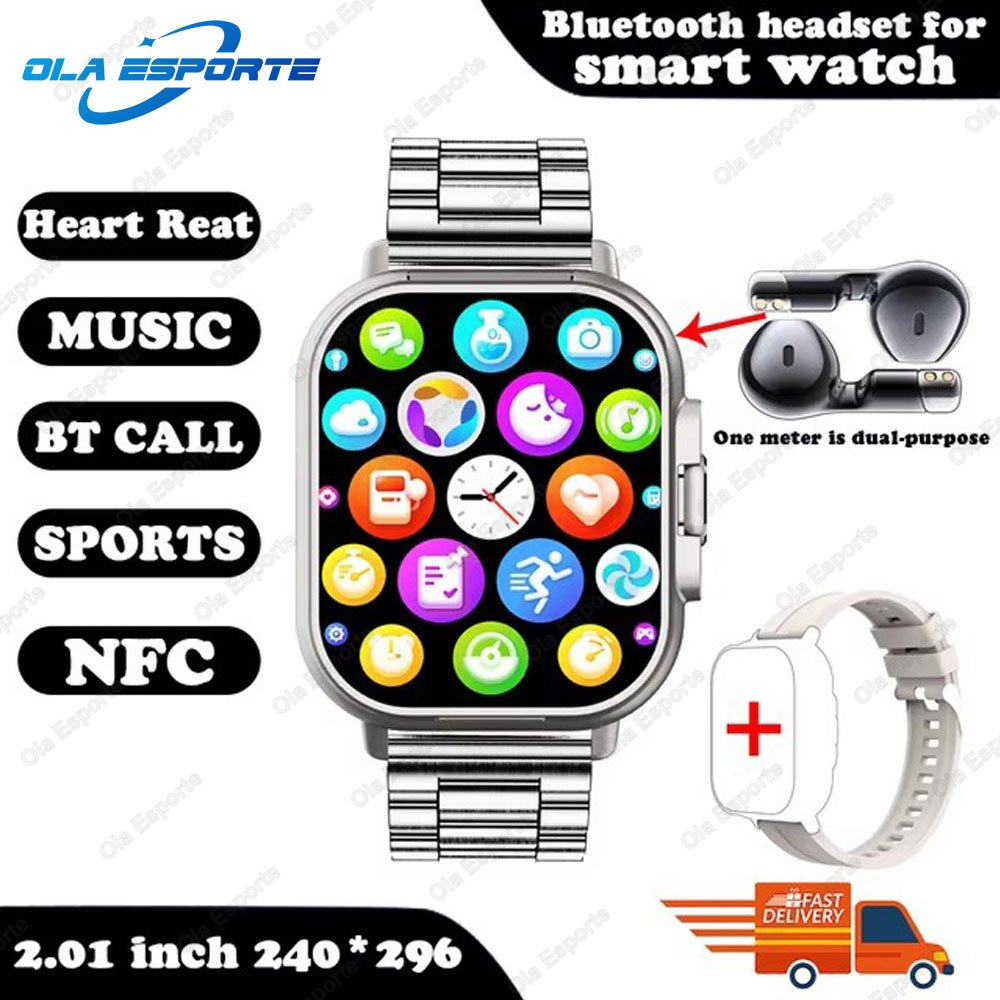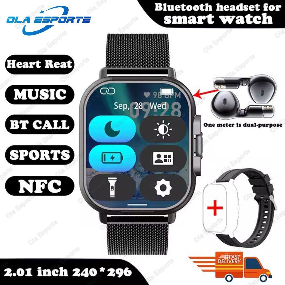 ساعة ذكية TWS 2 في 1 مع سماعات، NFC وبلوتوث