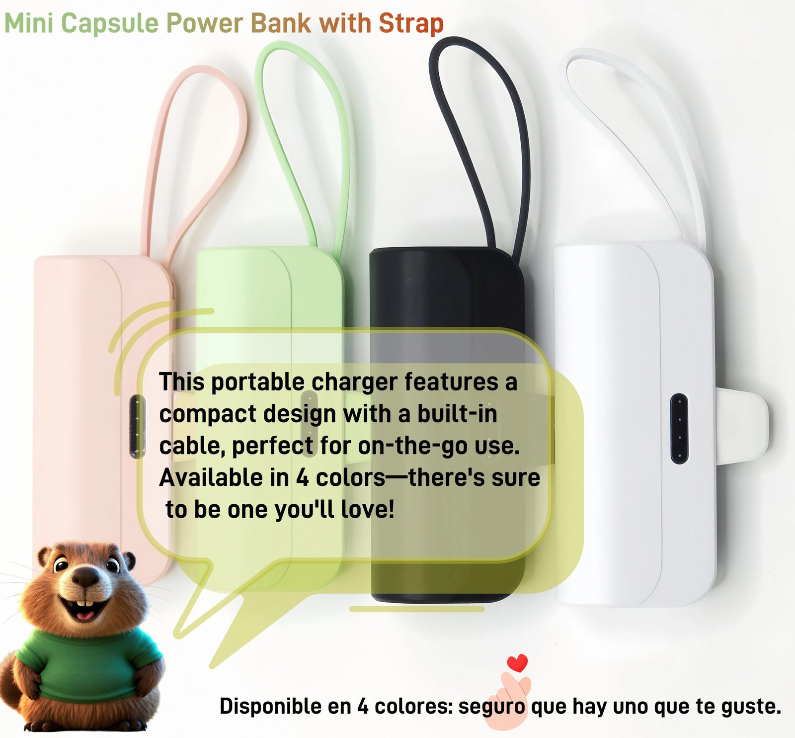 - يوفر باور بانك صغير 5000mAh سعة كافية لشحن هاتفك بالكامل أثناء حالات الطوارئ.