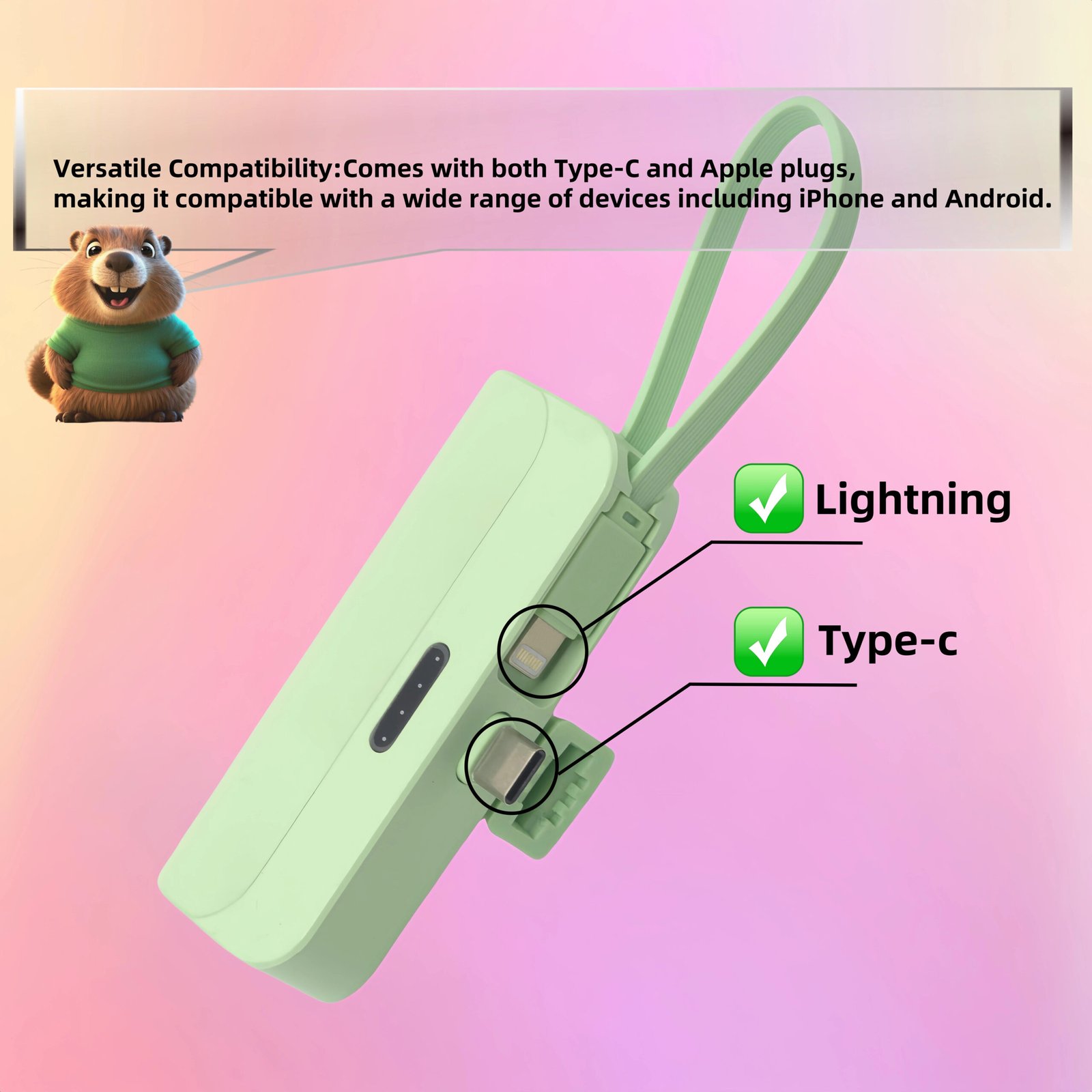 - يتضمن باور بانك صغير 5000mAh أنظمة حماية ذكية ضد الشحن الزائد والحرارة المرتفعة.