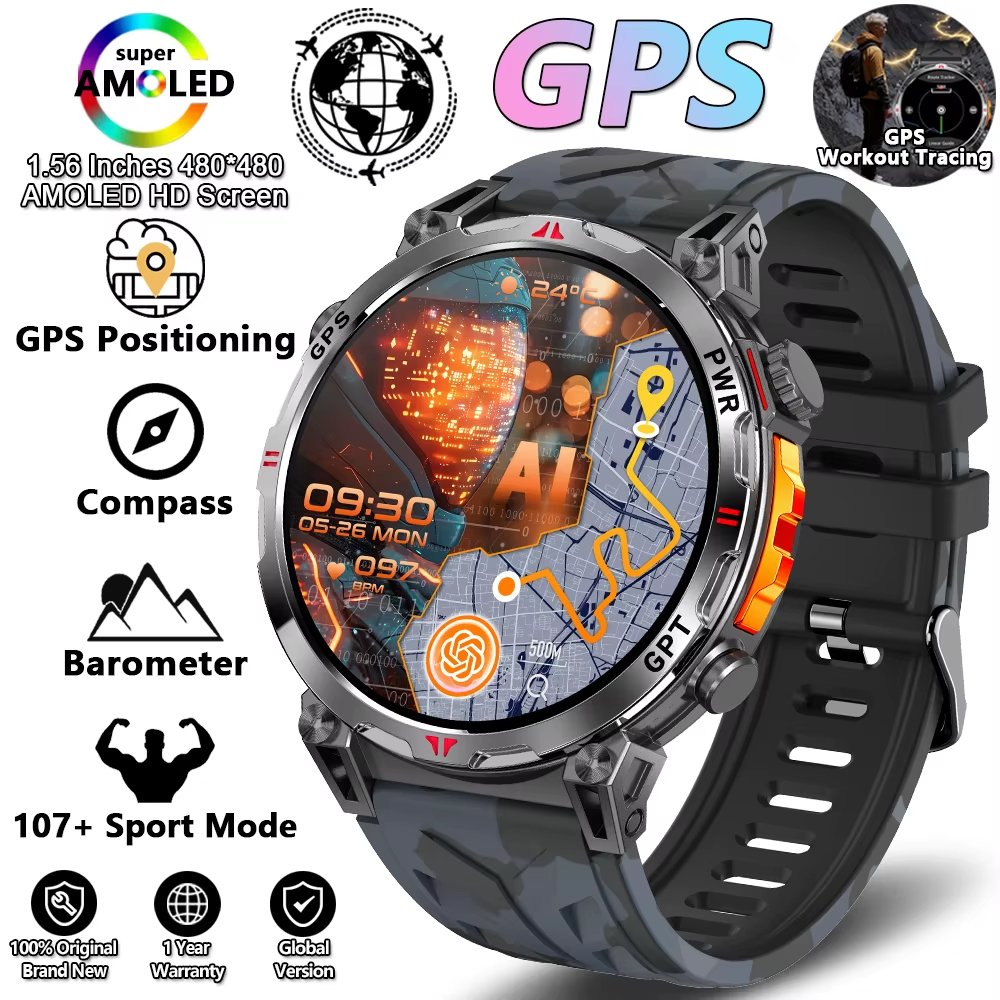 ساعة ذكية 2026 للرجال | مقاومة للماء GPS شاشة AMOLED