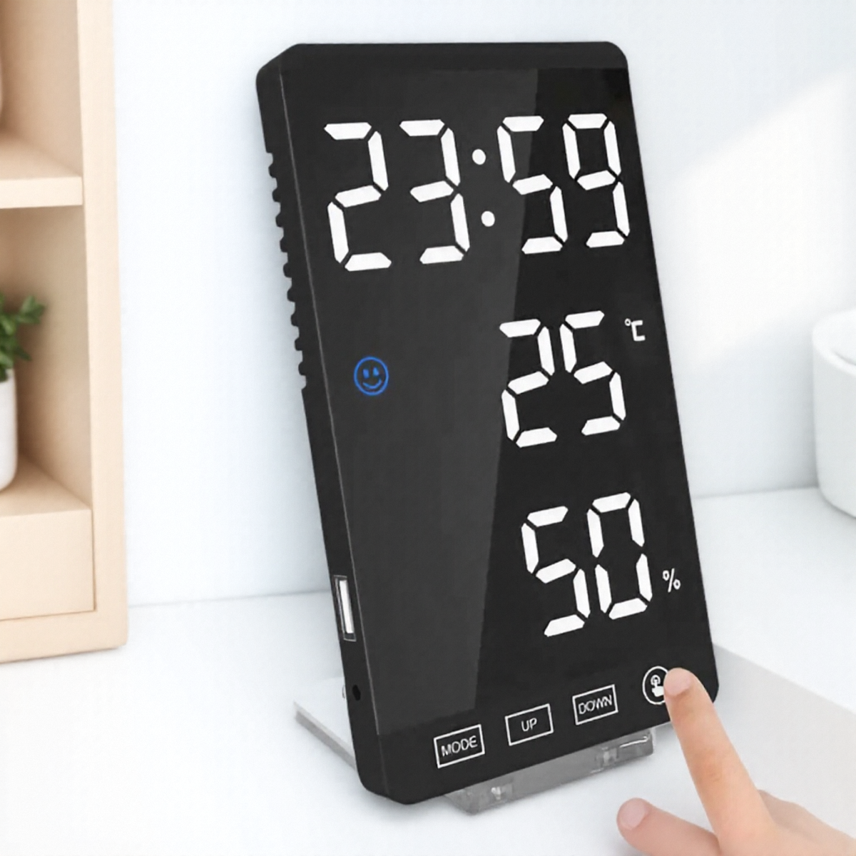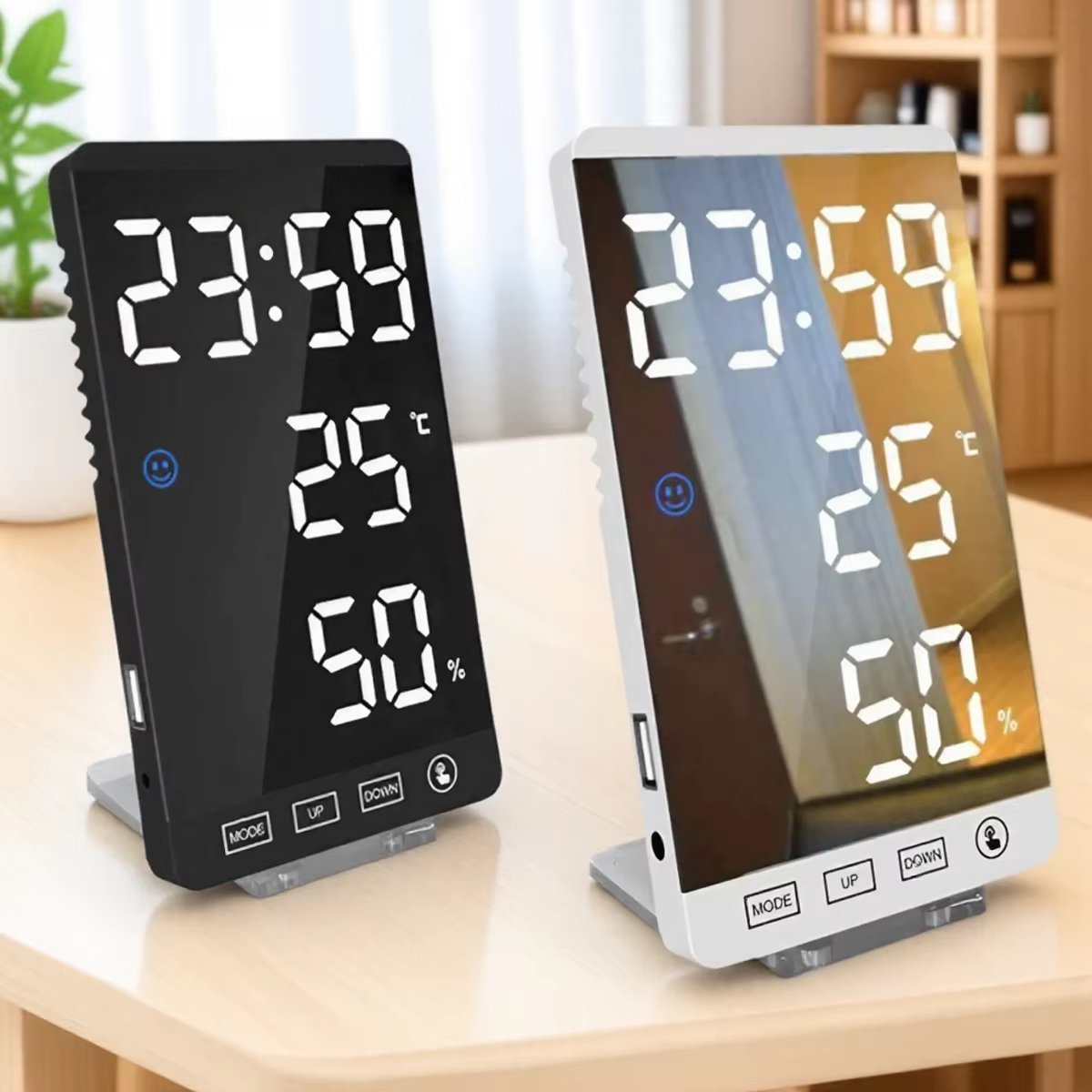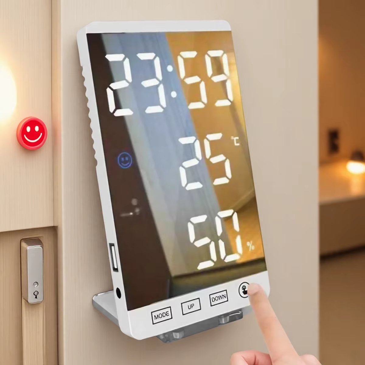 ساعة المرآة الرقمية المبتكرة تمنح غرفكم لمسة عصرية ذكية حيث تجمع بين التصميم الأنيق والوظائف المتعددة التي تظهر الوقت والمناخ المحيط بوضوح فائق يضيف رقياً لافتاً لكل زاوية بمنزلكم.