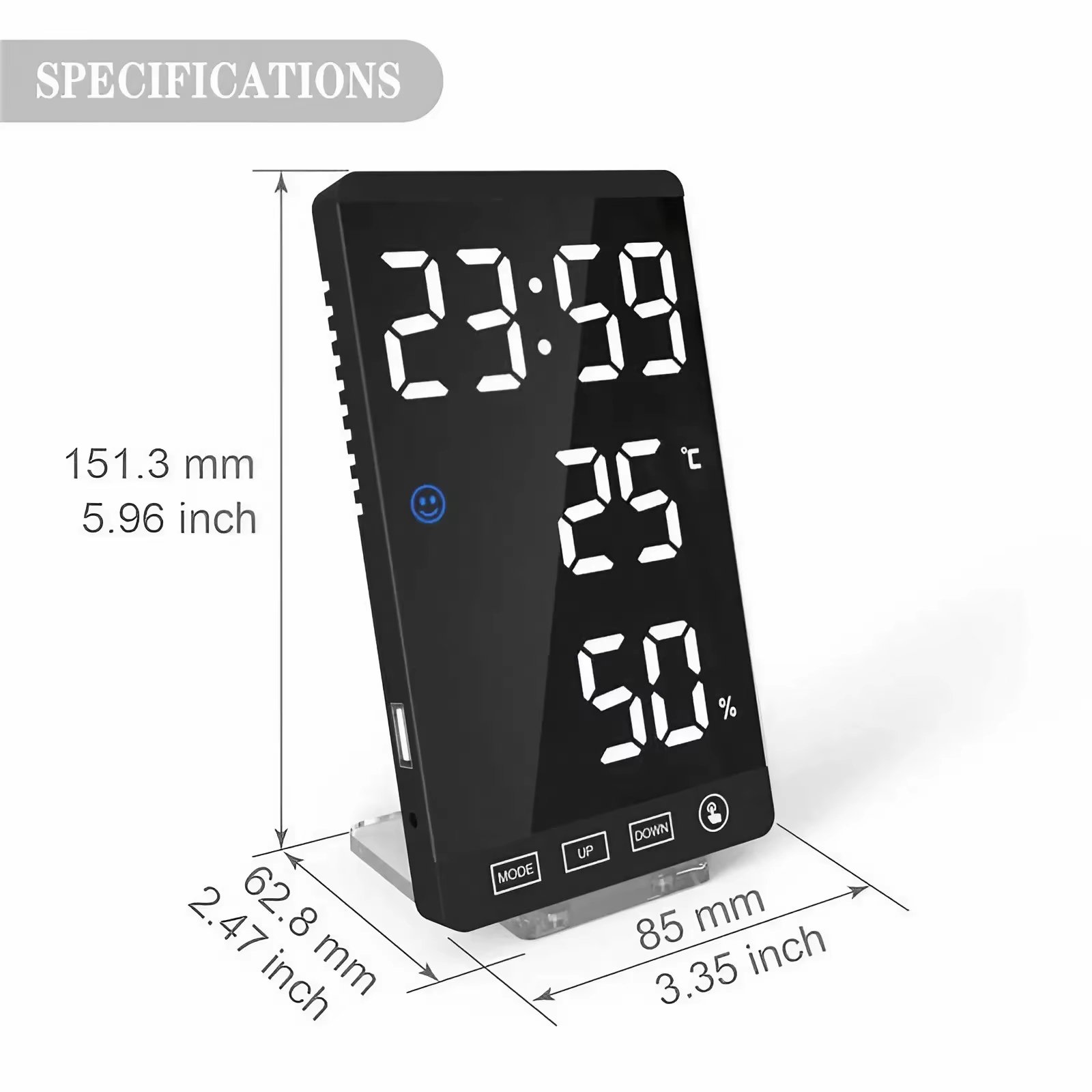 مميزات ساعة رقمية LED 6 بوصة مع مرآة ولمس