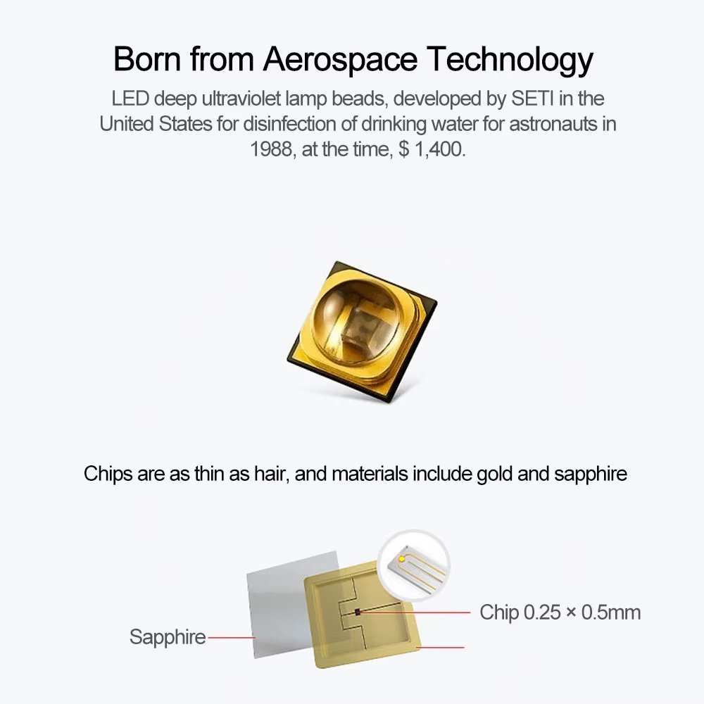 - التقنية: تعقيم فيزيائي بطول موجي 260-280 نانومتر